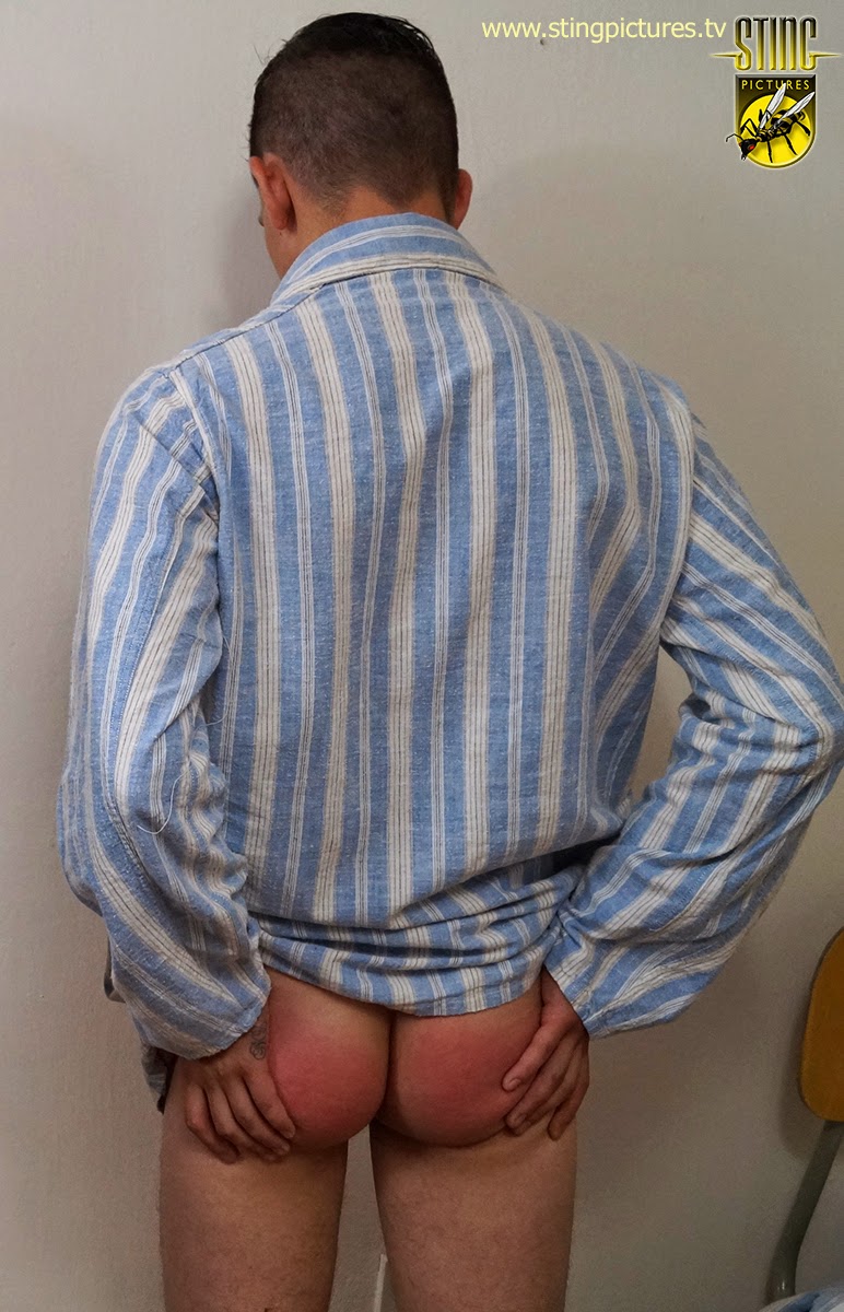 Now with both boys furiously rubbing their throbbing bare bottoms they are left in the care of their Housemaster (Marco) for further guidance! This comes in the form of an old thick brown leather belt.